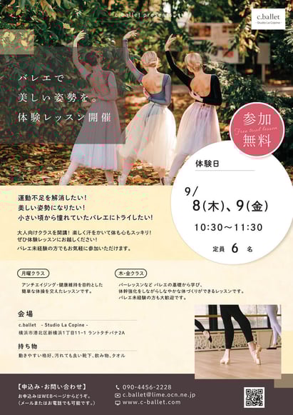 体験レッスン期間中:9/8~9は何度受講されても無料です!